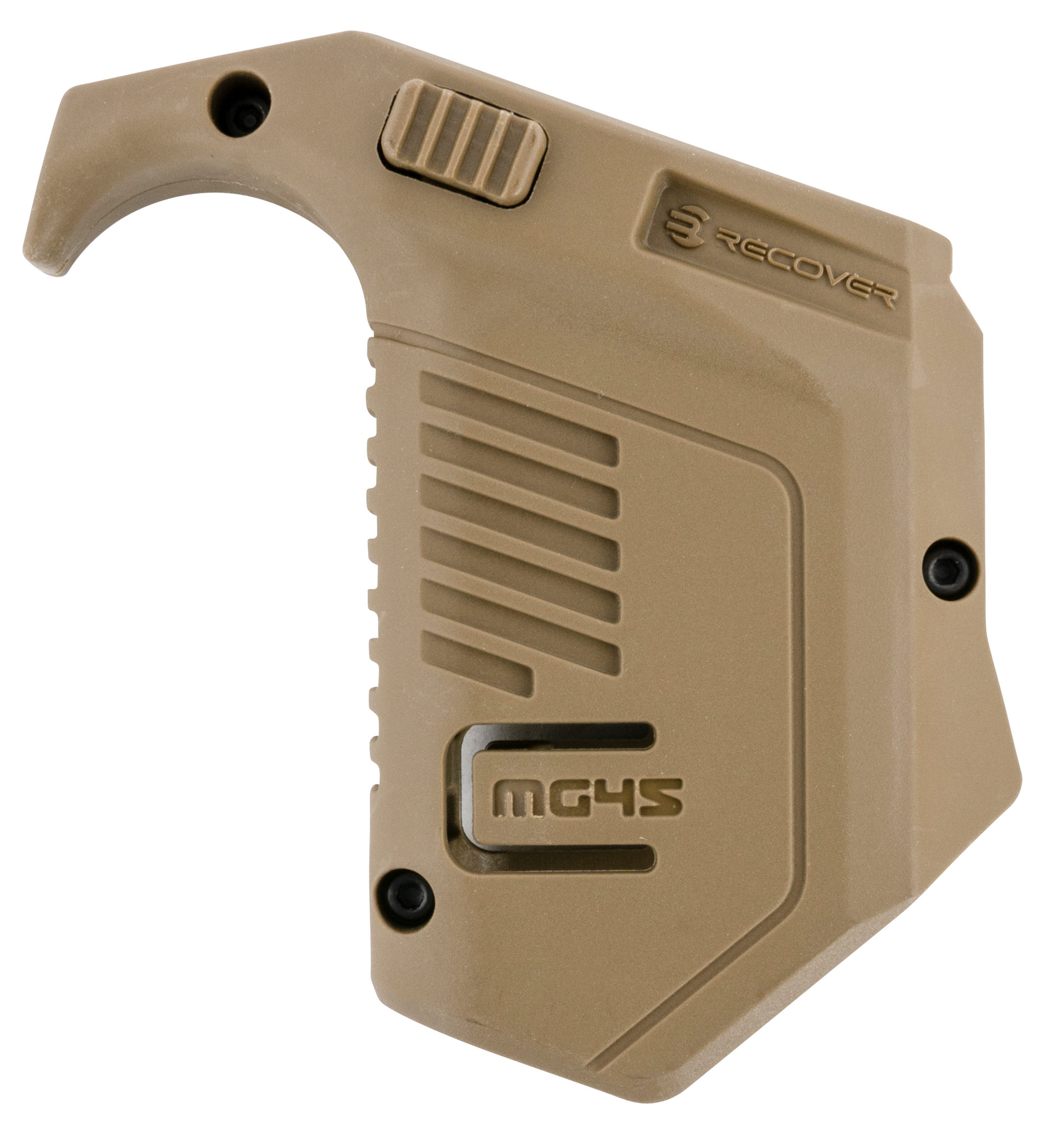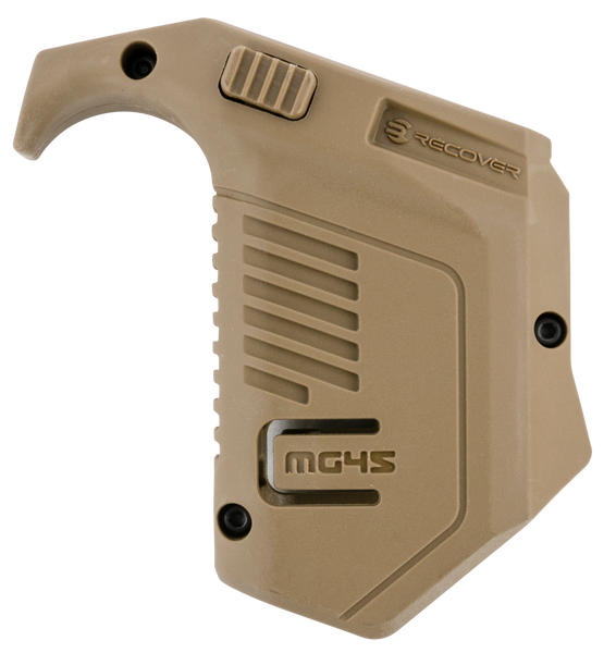 The mg45 angled mag pouch for the 20/21 stabilzer is only able to carry 10mm and 45acp glock double stack magazines.It features locking push button for quick mounting, bullet in mag witness window and works with picatinny rails.