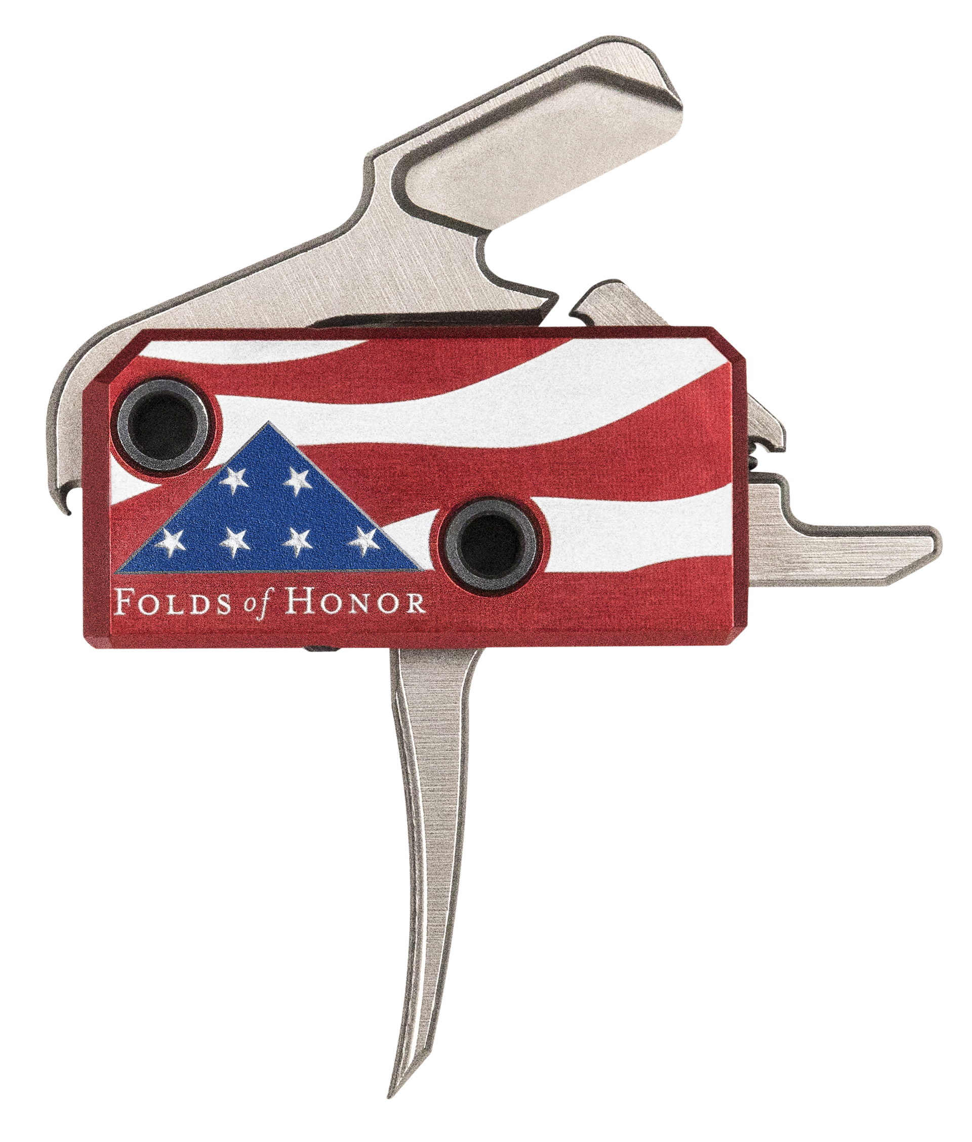 Benefiting folds of honor, the patriot high-performance trigger by rise armament is an easy-to-install, accuracy-enhancing rifle upgrade that gives back to veterans and their families.Each trigger purchase helps fund educational scholarships for children and spouses of fallen and disabled service members.The patriot trigger has a crisp, clean release and ultra-short reset for faster follow-up shots and improved accuracy.It has a light, 3.5-pound pull and straight trigger blade.The drop-in trigger group includes a commemorative challenge coin, along with free tools and anti-walk pins for fast and easy trigger installation.