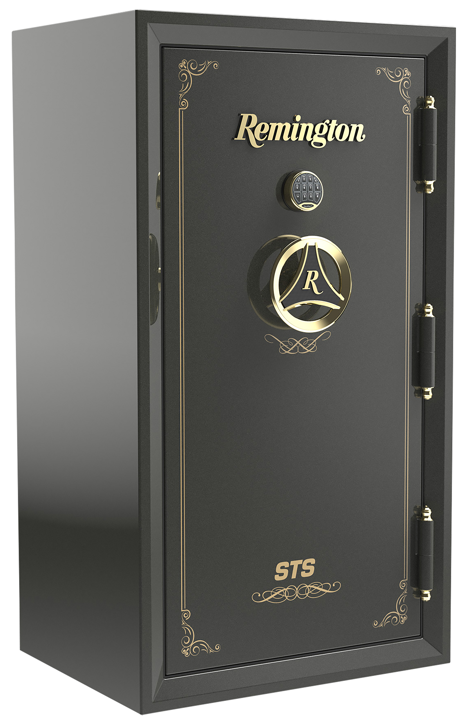 The remington sts, built from 10-gauge steel.This waterproof and fireproof safe can withstand 120 minutes at 1800 and water resistance for 2 feet for up to 7-days.The ul-rated securam lock is backlit and the interior is fully lit for easy access in low light conditions.Available in a metallic sage sts green, the safe stands out with brass hardware and a brass remington script decal on...View more
