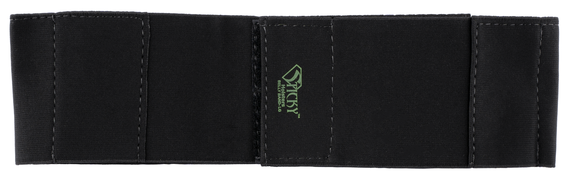 Sticky holsters belly band offers a level of comfort, versatility and concealment that is unmatched.Their modular belly band works in conjunction with a sticky holster.This allows the user to place the holster and gun in any location.Sticky holsters belly band is made with an industrial strength plush elastic that ensures both comfort and strength.The band has three patches of "sticky" material to ensure the band stays in place without constant adjustments or movement.The band also includes four built-in accessory pockets.The smaller two are perfect for an extra magazine or folding knife.The larger one fits a wallet, phone, id's, passport, and other important items.Since there is no built-in holster, this band can also be used as a travel band to hide important documents and is great for securing items while working out.