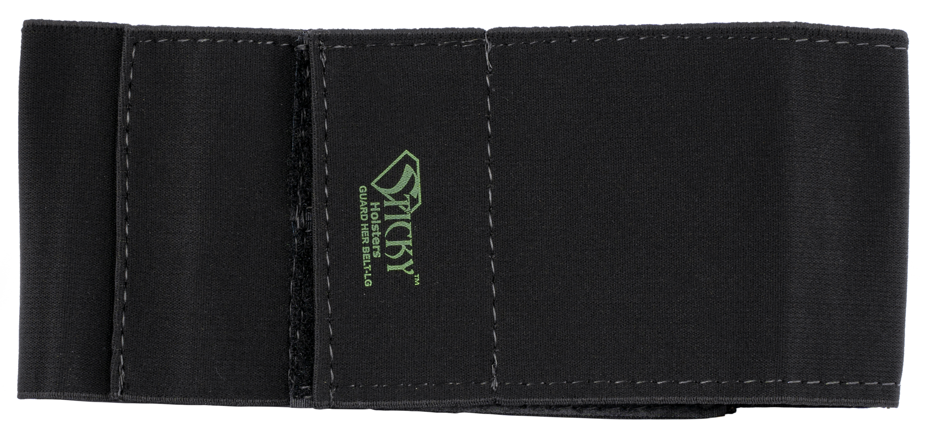 The sticky guard-her-belt is an improved design over other garter style holsters.Our modular designed guard-her-belt works in conjunction with a sticky holster providing versatility and stability.We used an extremely comfortable soft plush, industrial strength elastic.The plush is on both sides to eliminate any chaffing or discomfort.The "sticky" patches on the inside remove the need for any additional clips or straps to hold it in place.The guard-her-belt also includes two accessory pouches for an additional magazine or knife.20-31", overall length is 25".