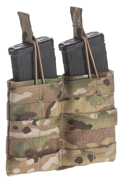 Double speed load rifle magazine pouch is designed with durability and fast reloading of your rifle in mind.Constructed with tough 1000 denier nylon exterior and blackened grommets that serve as convenient drain holes.Magazines are retained with top quality elastic cords and convenient pull tabs.Just flip them over when needing quick access when things get fast and furious.