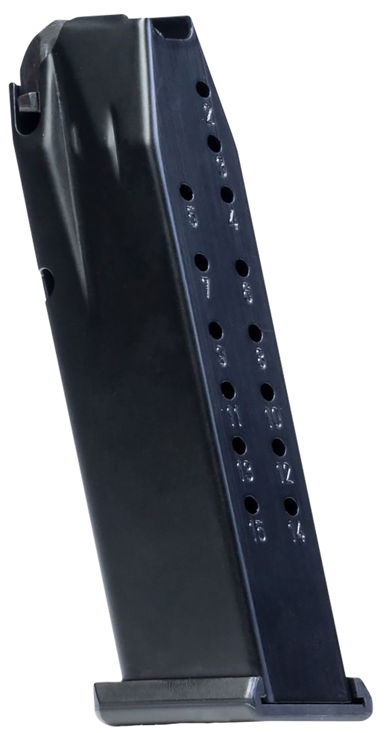 15rd, 9mm luger magazine is compatible with the tp9 elite combat, tp9 elite, mete sf & mete sf pro.