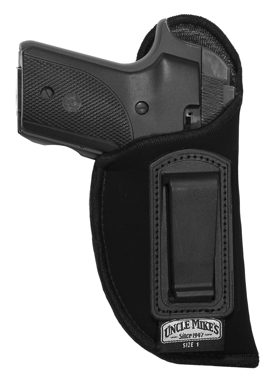 Uncle mikes inside the pants open style holster has ultra-thin four layer laminate no thicker than conventional suede leather holsters.The internal moisture barrier will not transmit perspiration to gun.Fits 3.25-3.75" barrel medium/large autos.
