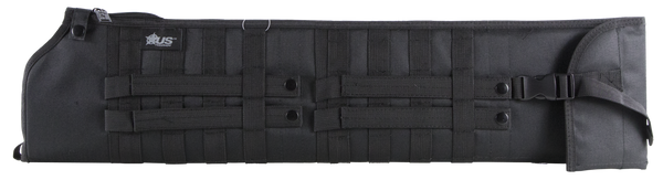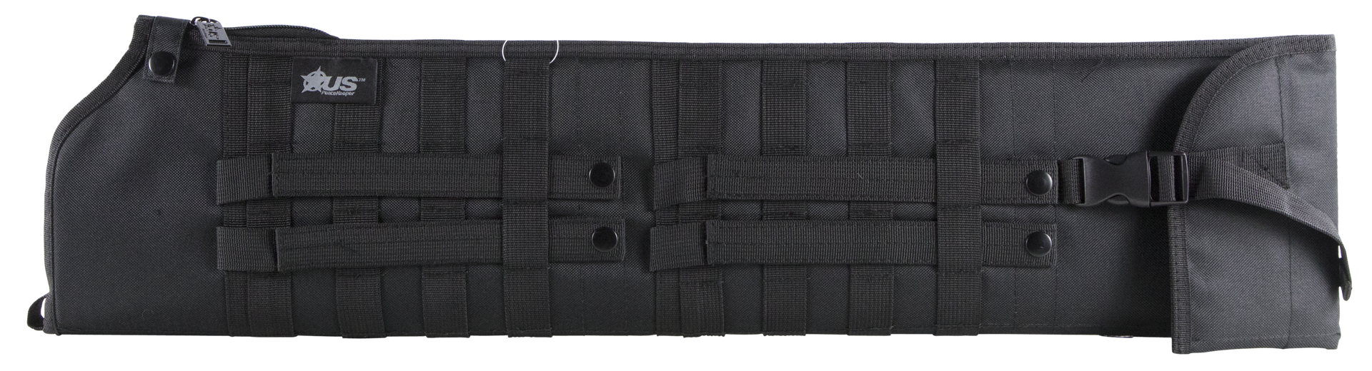 The us peacekeeper shotgun scabbard is heavily padded and framed for your shotguns protection.It offers tension straps to hold shotgun in place during movement.A folded, buckled flap of 5" can be fully extended for additional length (from 29.5" to 34.5").Detachable shoulder strap allows for sling or shoulder-carry.Scabbard will fit mossberg 590 shockwave, remington 870 tac-14, pistol grip airsoft shotgun and multiple other shotguns with pistol grip and most shotguns with a flashlight mount.Includes lifetime warranty, webbing on front & back, and detachable sling strap.