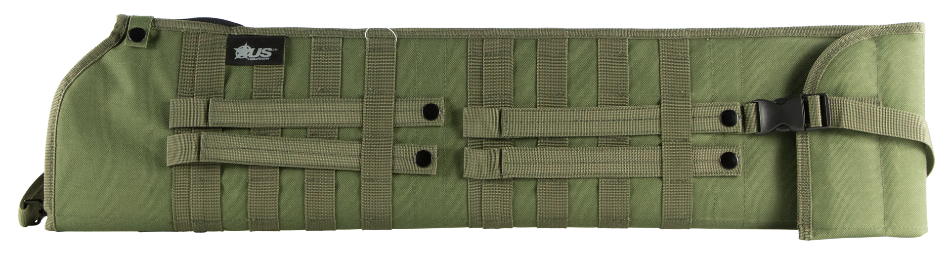 The us peacekeeper shotgun scabbard is heavily padded and framed for your shotguns protection.It offers tension straps to hold shotgun in place during movement.A folded, buckled flap of 5" can be fully extended for additional length (from 29.5" to 34.5").Detachable shoulder strap allows for sling or shoulder-carry.Scabbard will fit mossberg 590 shockwave, remington 870 tac-14, pistol grip airsoft shotgun and multiple other shotguns with pistol grip and most shotguns with a flashlight mount.Includes lifetime warranty, webbing on front & back, and detachable sling strap.