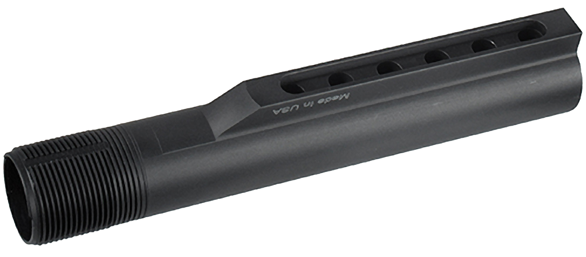 The utg pro mil-spec 6 position diameter receiver extension tube for ar15 rifles.The extension tube is cnc machined from 6061-t6 aircraft grade aluminum with precisely rolled threads for durable thread engagement with the lower receiver.Finished in a matte black type iii class ii hard coat anodized.Made in usa.