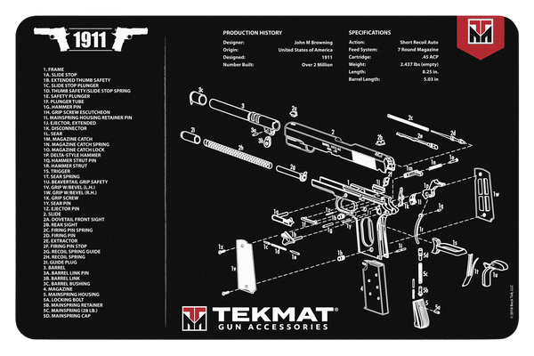 Tekmats are large enough to handle a fully disassembled handgun with room to spare for tools and accessories.The 1/4" padding on these mats offers protection from any rough handling or drops while working on your firearm.The ultra-soft, oil and water-resistant surface helps protect your firearm from scratches.