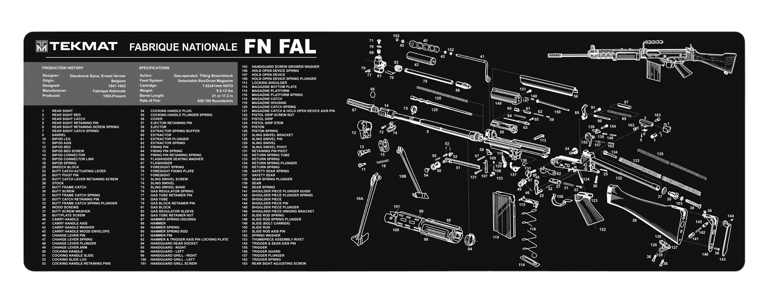 The 36" tekmat gun cleaning mat is 12" x 36" and 1/8" thick.The over-sized design gives you plenty of room to disassemble your firearm and to clean it without having to move parts all over.The soft thermoplastic fiber surface ensures your gun doesn't get scratched.Tekmat is water-resistant, scratch proof, fade and oil resistant dye-sublimation printing.Type: Cleaning MatSize: 12"x36"x1/8"Length: 36"Material: RubberProtects: Against Chipping/ScratchingSuitable For: FirearmsView more