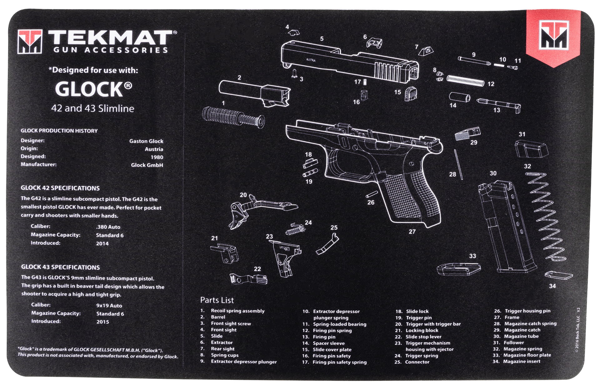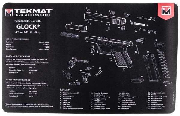 The 17" tekmats are large enough to handle a fully disassembled handgun with room to spare for tools and accessories.The 1/8" padding on these mats offers extra protection from any rough handling or drops while working on your firearm.The ultra-soft, oil and water-resistant surface helps protect your firearm from scratches.
