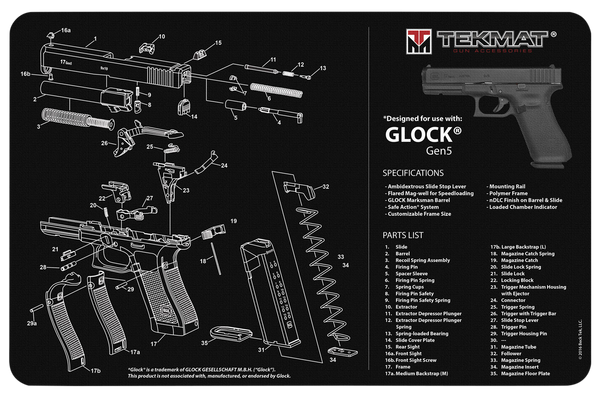 The 17" tekmats are large enough to handle a fully disassembled handgun with room to spare for tools and accessories.The 1/8" padding on these mats offers extra protection from any rough handling or drops while working on your firearm.The ultra-soft, oil and water-resistant surface helps protect your firearm from scratches.Size: 11"x17"x1/8"Length: 17"Material: RubberProtects: Against Chipping/ScratchingSuitable For: HandgunsView more