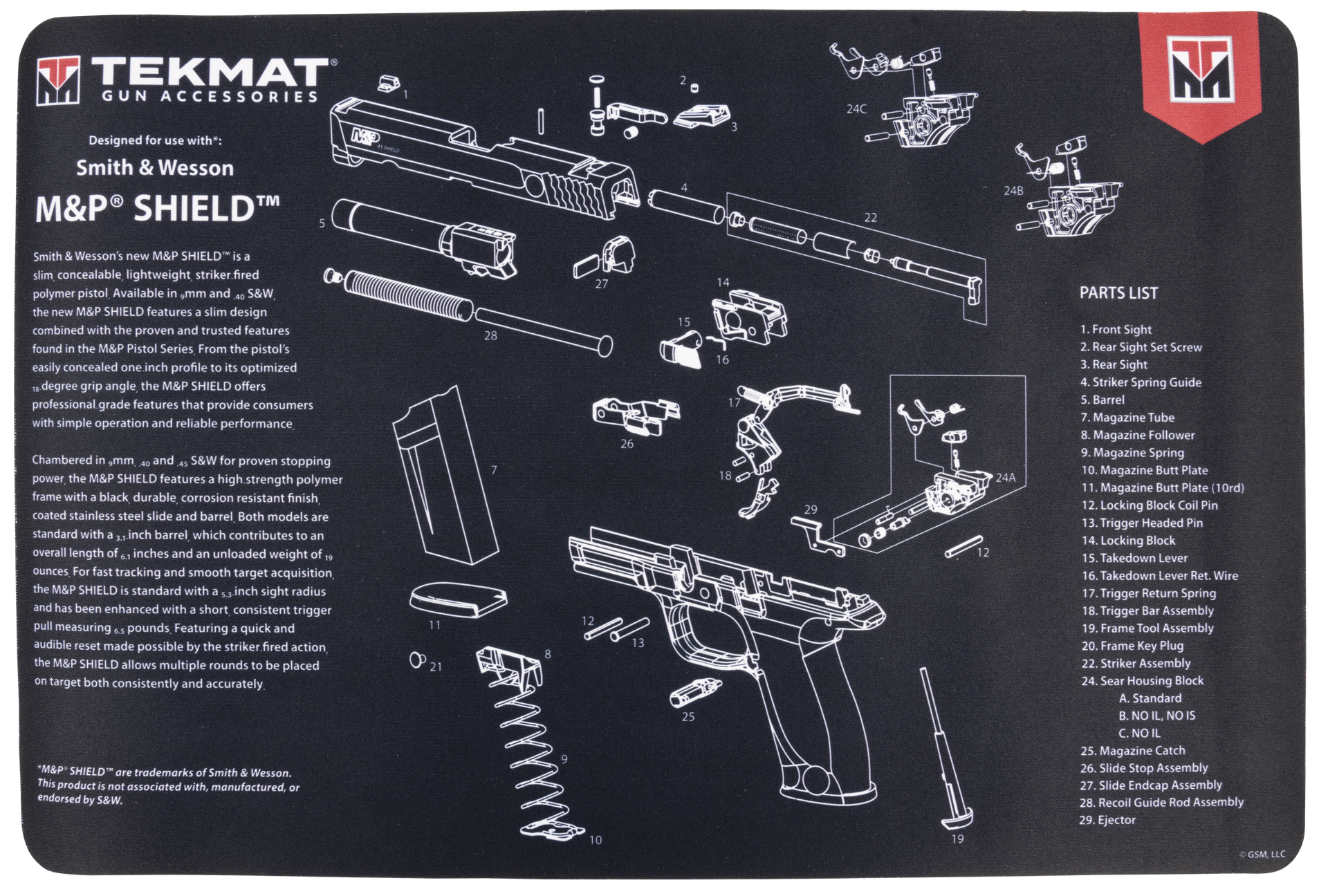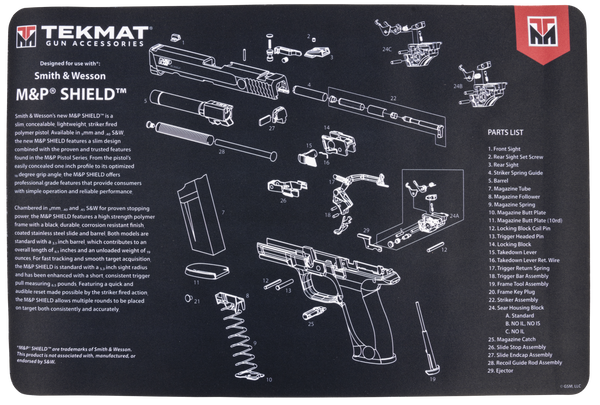 Tekmat s&w m&p shield gun cleaning mat.Length: 17"Material: Rubber