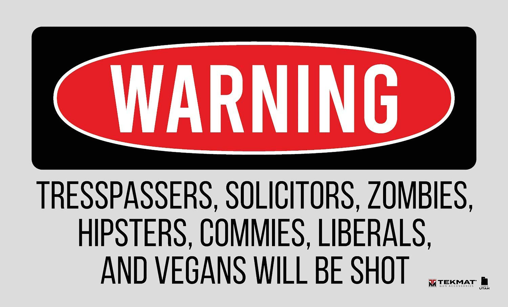 Trespassers will be shot door/work mat is made of the same materials as a tekmat, 1/8 thick with vulcanized rubber that will keep the door/work mat from sliding.It is waterproof, washable, and oil resistant.The dye sublimated printing won't wear off.