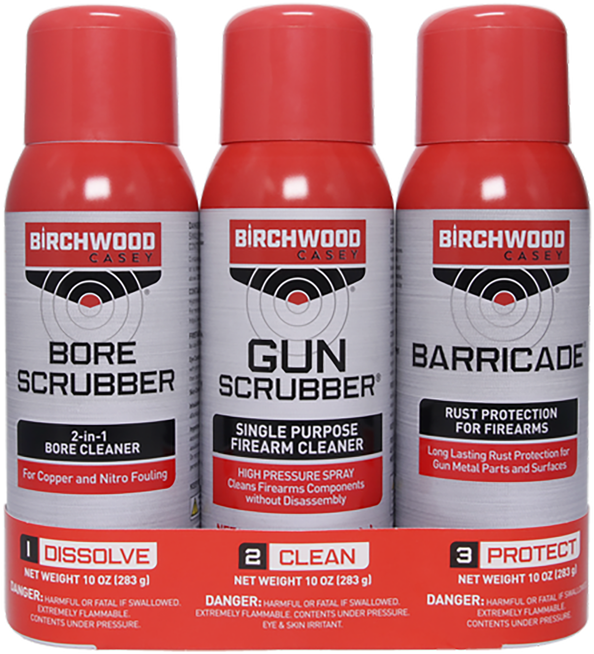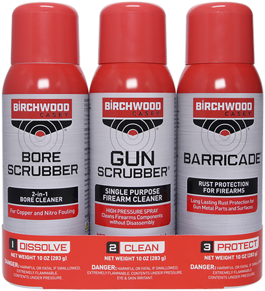 Gun cleaning made simple.3 easy steps to clean your firearm: dissolve, clean and protect.First, use bore scrubber to dissolve copper fouling and residue left behind from firing your firearm, second clean out the dissolved material with gun scrubber and third cover with barricade to protect your firearm from rusting.