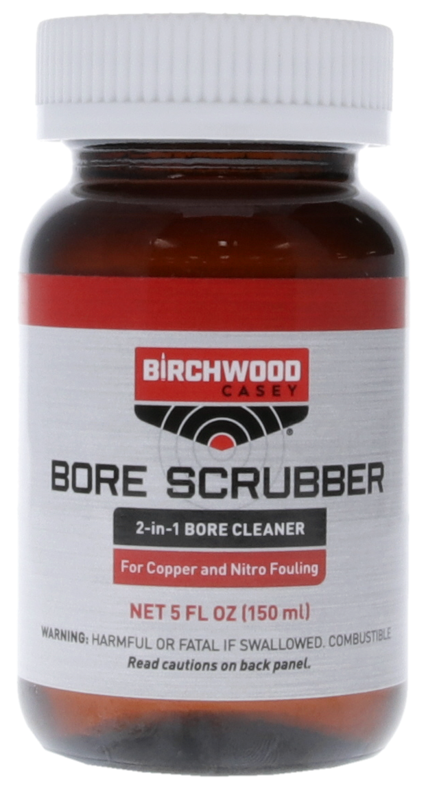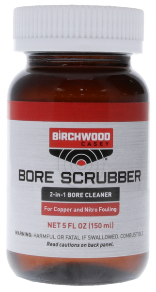 Birchwood's bore scrubber 2-in-1 cleaner does it all! it attacks, dissolves, and removes all types of barrel fouling including lead, copper, plastic, carbon, and powder fouling.Its superior rust preventive additives provide long-term protection after cleaning.It contains no highly toxic ingredients and is great for rifles, shotguns, and handguns.Type: Bore CleanerSize: 5 ozQuantity: 1Material: MultipleProtects: Against RustSuitable For: FirearmsHazair: YesView more