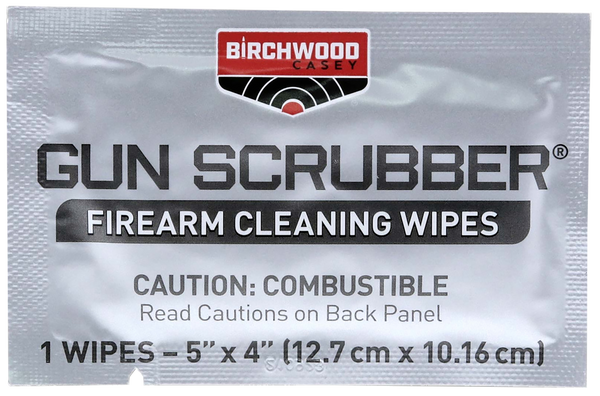 Birchwood's gun scrubber wipes leaves no residue and dries fast.It dissolves greases, carbon fouling and oils quickly.Type: CleanerQuantity: 12 PackProtects: Against Carbon Fouling/Grease/OilSuitable For: FirearmsHazair: YesView more