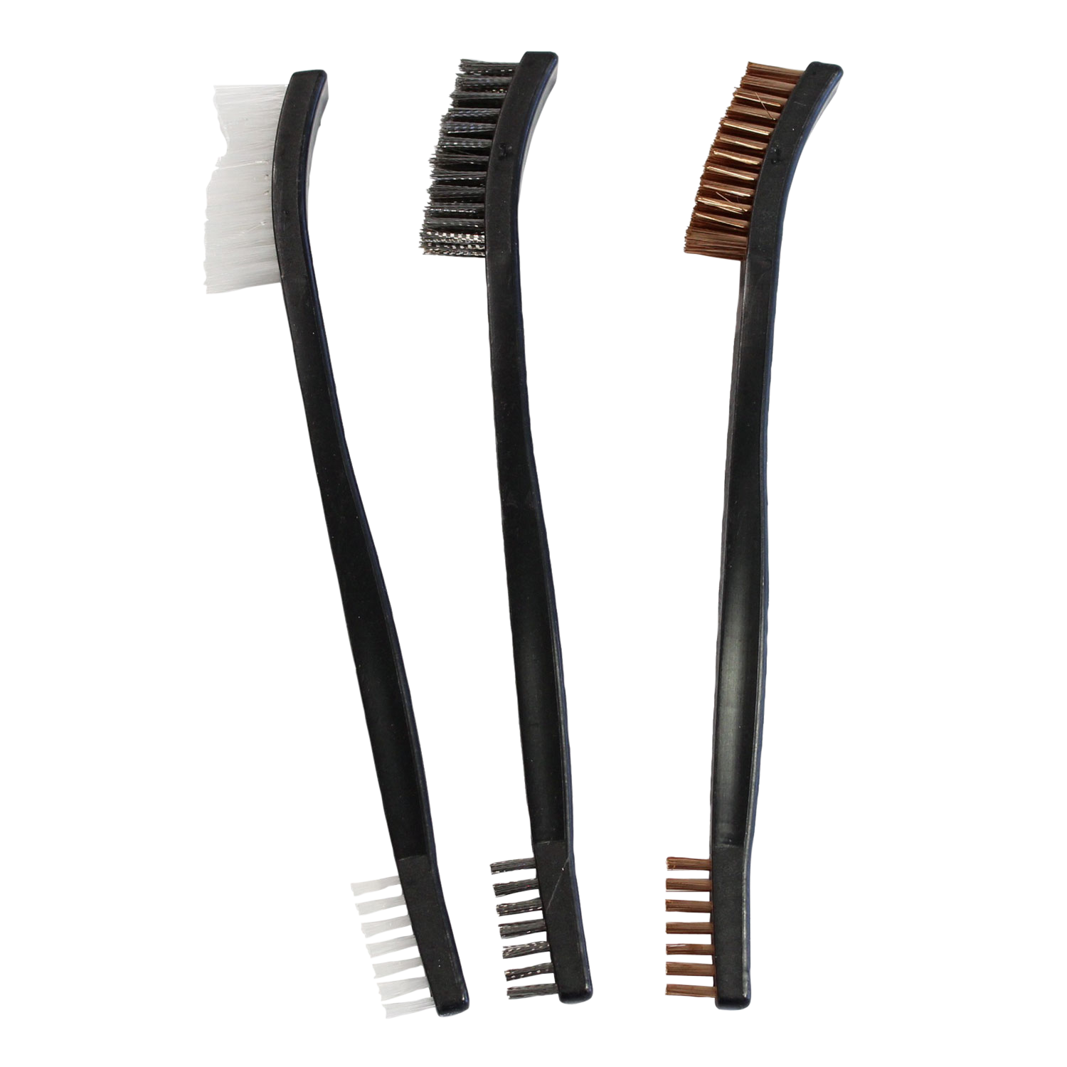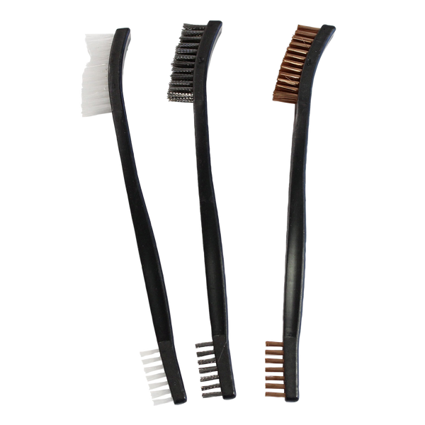 Birchwood casey utility brushes come in a 3 pack with different style brush ends.Nylon brush: use on delicate blueing and engraving.Bronze brush: ideal for tough deposits.Stainless brush: use for the toughest removal of deposits.