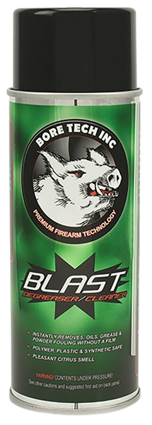 Bore tech's blast degreaser is a fast acting and fast drying blend of synthetic and natural solvents carefully balanced to provide optimum cleaning of carbon, oil and grease without the offensive smell and damaging properties of traditional degreasers.Blast degreaser is ideal for quickly cleaning and degreasing rifle and shotgun actions, pistol slides, trigger assemblies and hard to reach areas.