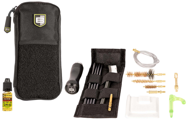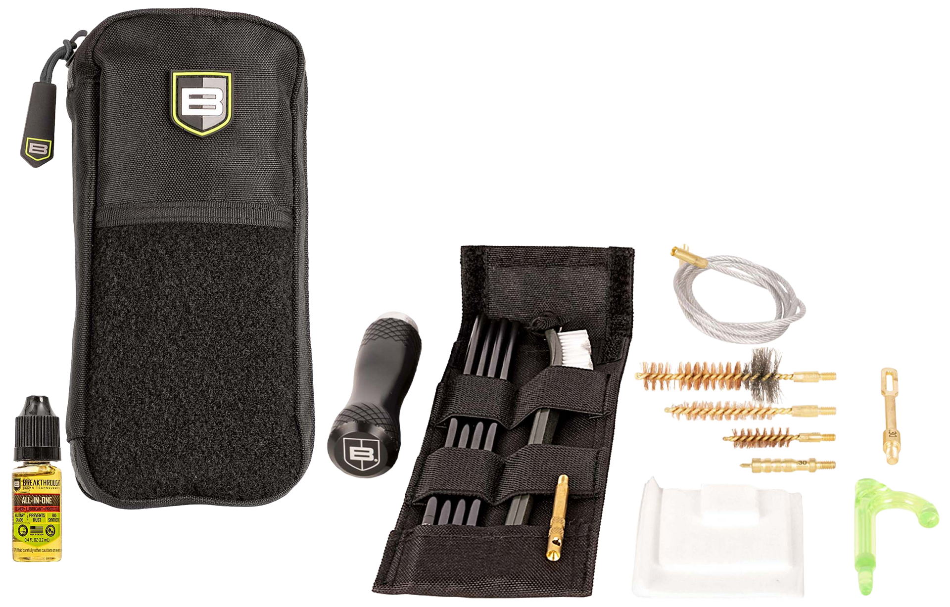 Experience the ultimate convenience with the breakthrough clean technologies badge series rod & pull-through cleaning kit.This all-in-one kit packs a punch, ensuring your gun stays in top-notch condition.Featuring top-of-the-line cleaning tools and highly effective all-in-one clp, this kit has everything you need to clean your 7.62mm chambered firearms.Provided are all accessories needed and is neatly organized in a rugged nylon molle pouch.Elevate your range day with a cleaner, and a more reliable firearm with breakthrough clean technologies.