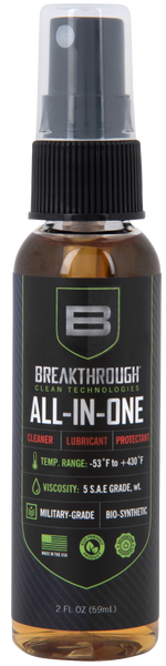 This biosynthetic all-in-one (clp) is expertly crafted using the finest base oils, additives, and most effective solvents that modern chemistry has to offer.Providing superior two-in-on cleaning and lubrication, the all-in-one (clp) removes carbon fouling, oil, and grime, while penetrating deep to provide protection from rust and corrosion, all the while minimizing friction and wear from metal-to-metal contact.The all-in-one (clp) is a great addition to your range bag to keep your firearms running smoothly.