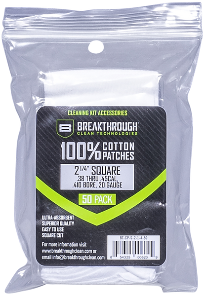 These breakthrough clean technologies woven 100% cotton knit patches are ultra-absorbent and effectively clean your firearms.These pre-cut squares make it easy to use and are available in a wide variety of calibers to meet all of your gun care needs.