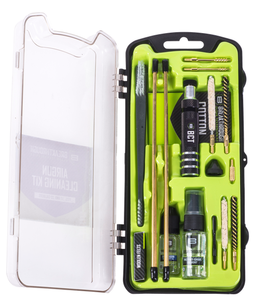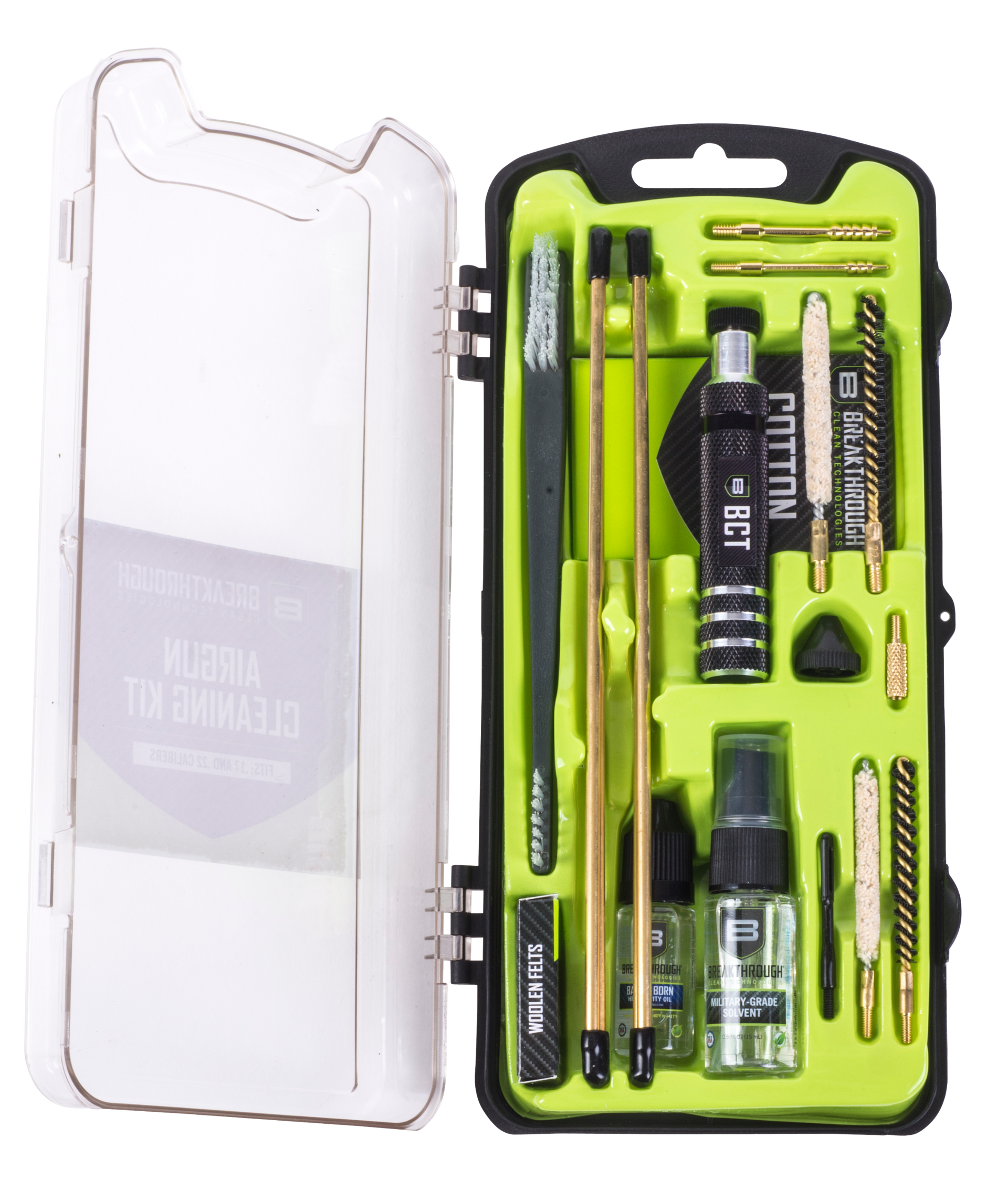Breakthrough's compact vision series cleaning kit line offers you everything you need to ensure a thorough clean.Its plastic tray keeps all the various pieces of the kit organized neatly inside a durable case that acts like a mini toolbox.This airgun cleaning kit come with four (4) brass rods, handle, 3 brushes ( (2)bore brush, double end brush), (2) cotton mops, muzzle guard, brass patch holder,...View more