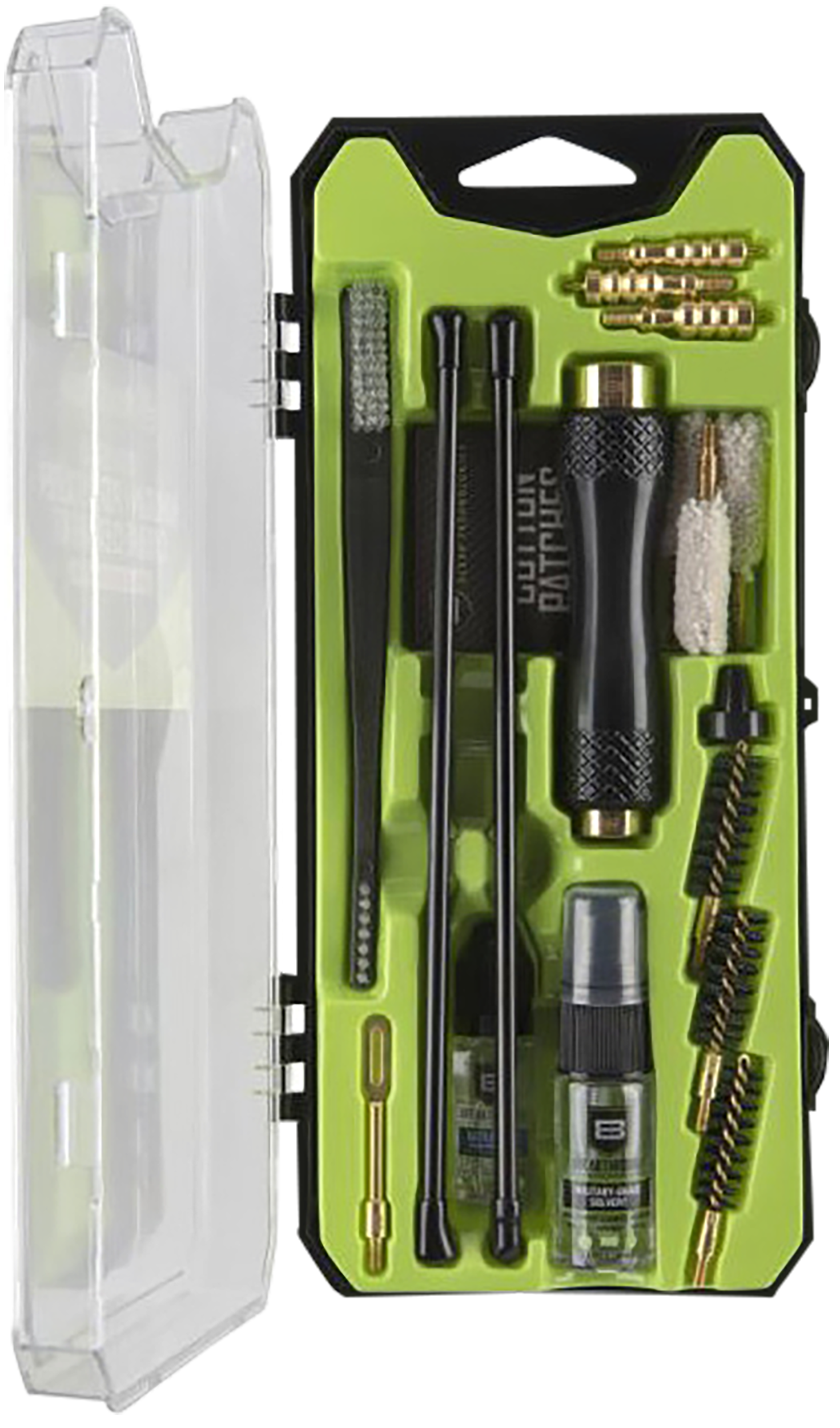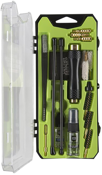 The vision series cleaning kit line offers you everything you need to ensure a thorough clean.Its plastic tray keeps all the various pieces of the kit organized neatly inside a durable case that acts like a mini toolbox.The cleaning kits includes: 2 cleaning rod sections, 3 nylon brushes, 3 jags, patch holder, cotton patches, aluminum handle, mini bottle of battle born high-purity oil.Caliber Or Gauge:...View more