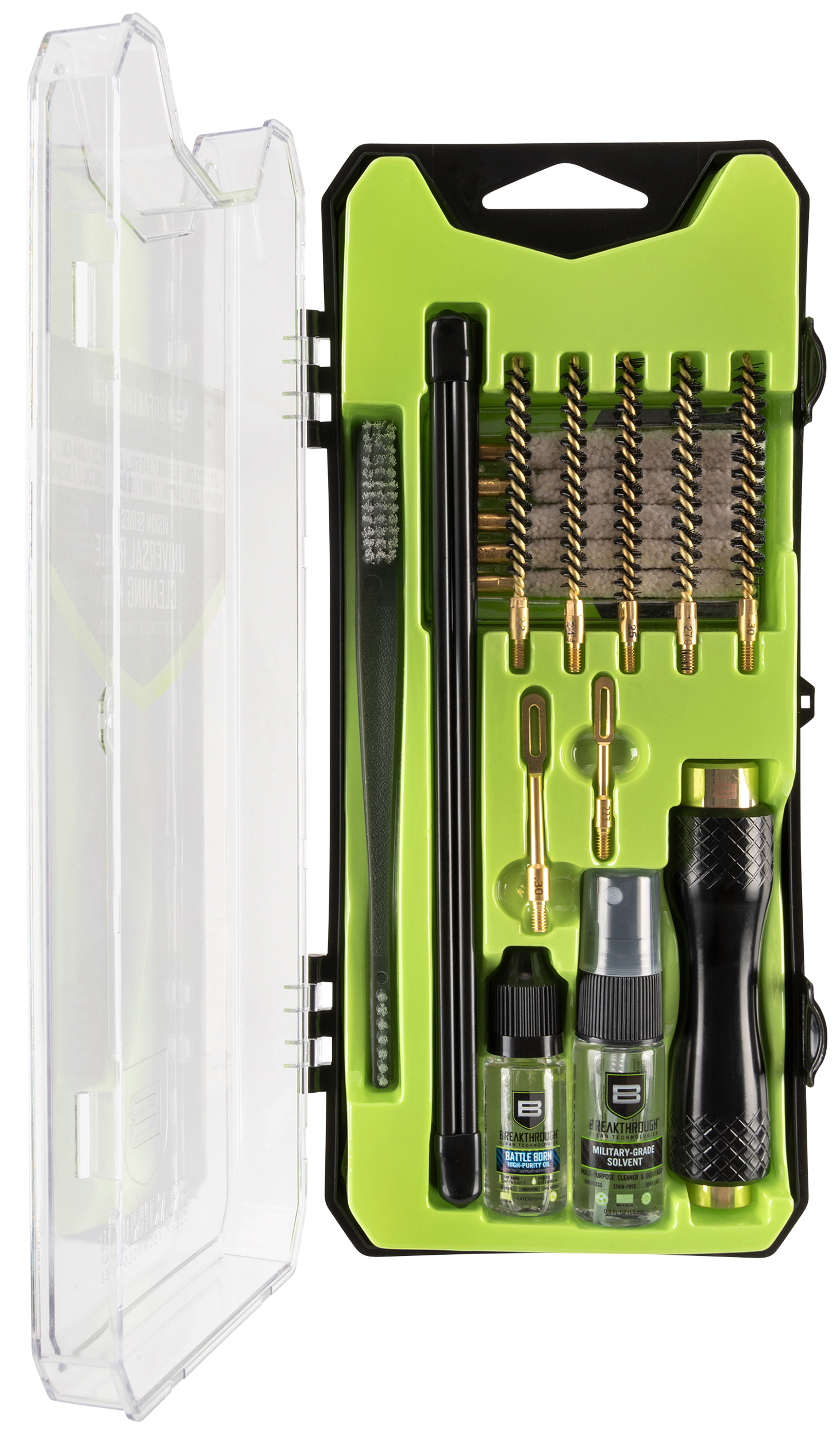 Looking for a comprehensive cleaning kit to ensure your firearms are in top condition? breakthrough clean technologies universal vision series shotgun cleaning kit has got you covered.With everything you need to get the job done right, this kit comes with cleaning rod sections, various hard bristle nylon brushes, jags, patch holders, and cotton patches.Plus, durable and detachable aluminum handle with knurling for an easy grip and bottles of military-grade solvent and battle born high-purity oil.All of this is neatly organized inside a durable case that acts like a mini toolbox, complete with a plastic tray to keep everything organized.