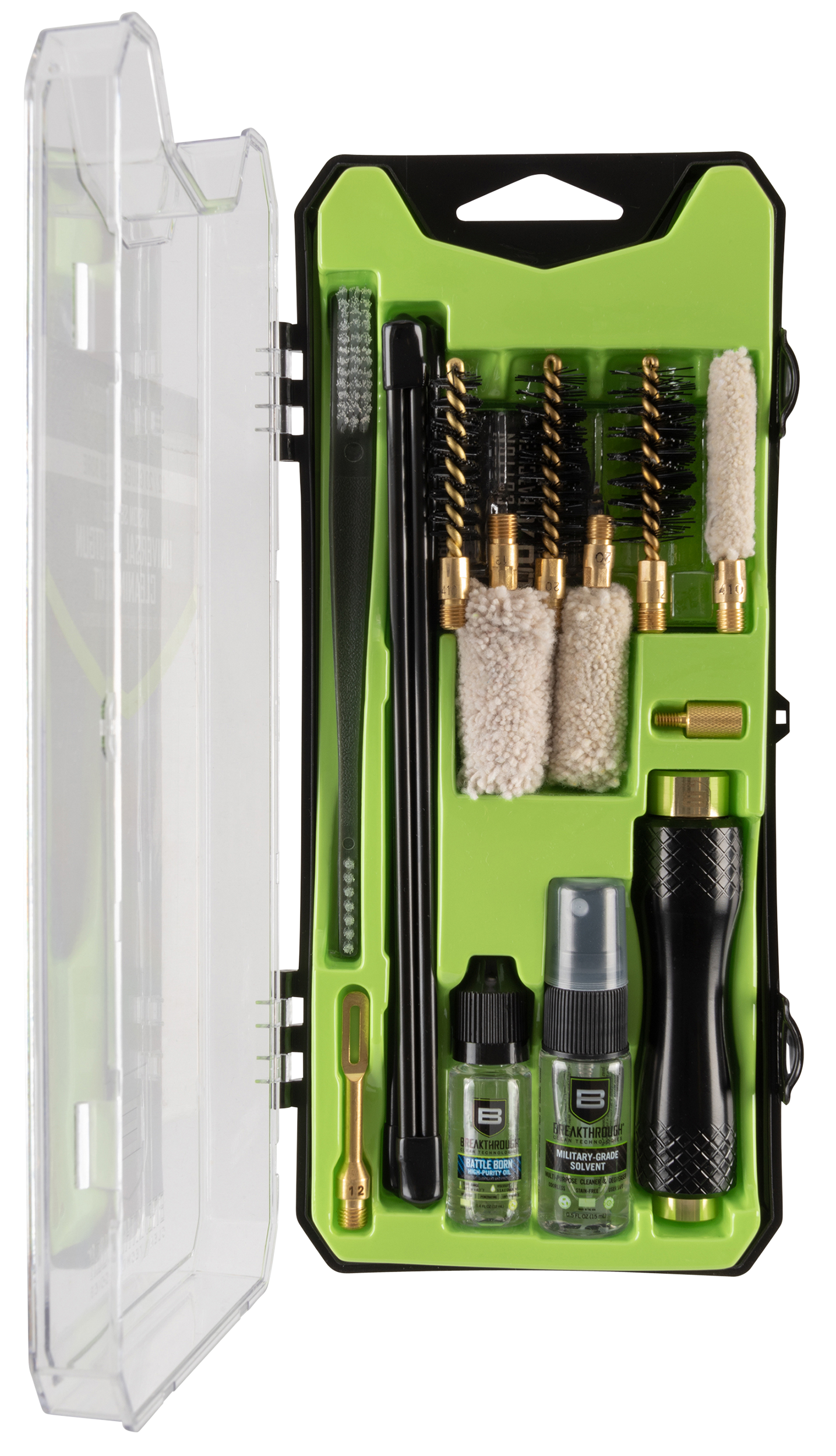 Looking for a comprehensive cleaning kit to ensure your firearms are in top condition? breakthrough clean technologies universal vision series shotgun cleaning kit has got you covered.With everything you need to get the job done right, this kit comes with cleaning rod sections, various hard bristle nylon brushes, jags, patch holders, and cotton patches.Plus, durable and detachable aluminum handle with knurling for an easy grip and bottles of military-grade solvent and battle born high-purity oil.All of this is neatly organized inside a durable case that acts like a mini toolbox, complete with a plastic tray to keep everything organized.