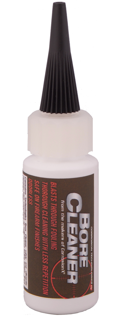 Corrosion technologies bore cleaner safely and efficiently removes every component of multi-layered bore buildup, including hydrocarbon resins, dust and dirt, salts, minerals, carbon and soft metal fouling.Brings pistol, shotgun and rifle (even black powder rifle) actions, bores and barrels back to mirror brightness.Bore cleaner is completely safe on polymers, varnishes, soft metals and metal alloys, bluing, anodizing and all other known gun finishes.Odorless and clear, so you can easily see fouling and contaminants on the patch to know when your firearm is perfectly clean.