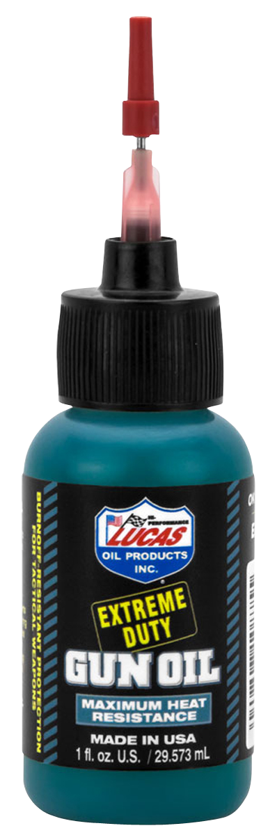 Lucas extreme duty gun oil is a special blend of oil and petroleum-extracted additives producing a lubrication specially formulated for high volume, high heat and friction firearms.The oil is designed for semi-auto rifles, shotguns and pistols as well as full auto firearms and suppressors.It offers superior burn-off resistance and the polymeric film protects metal from rust, moisture and dramatically reduces wear during all shooting conditions.