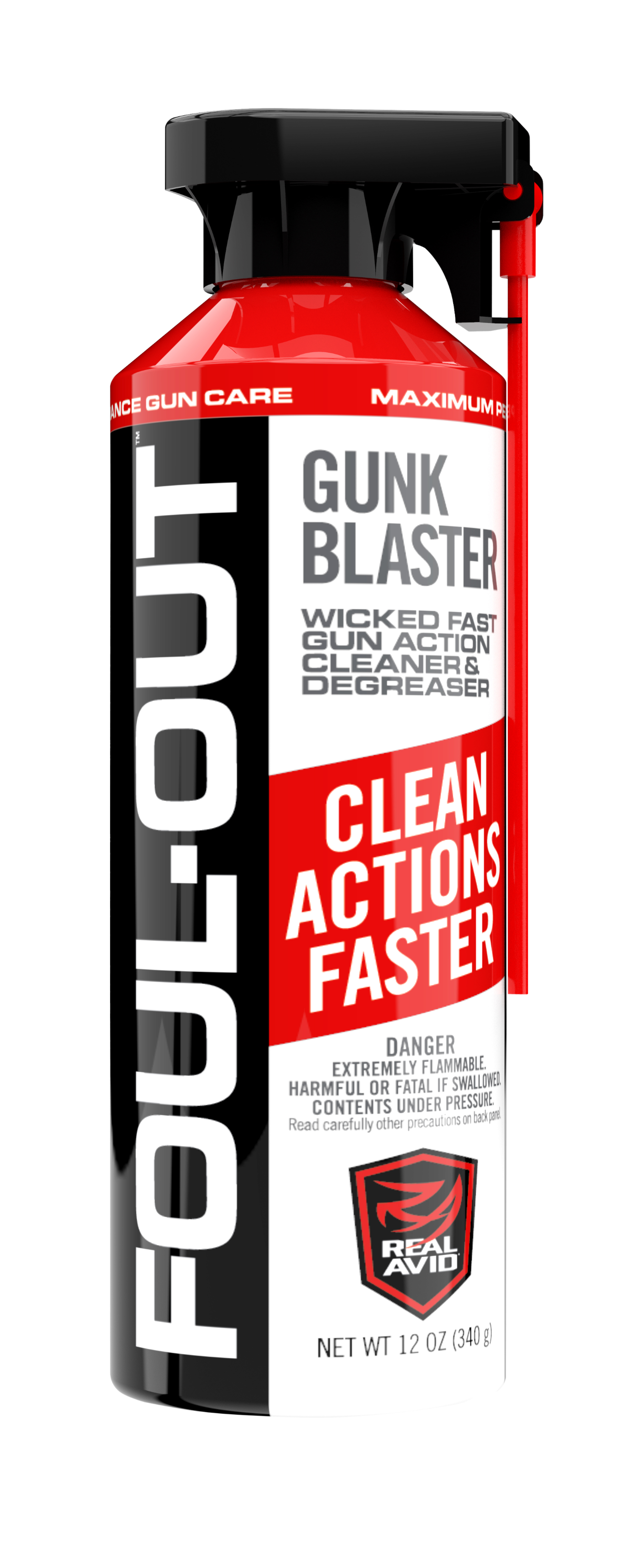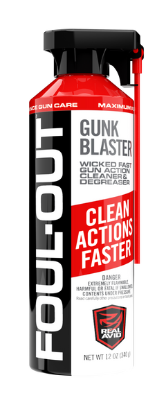 Wicked fast gun action cleaner & degreaser: foul-out gunk blaster blows away grease and grime fast and leaves no sticky residue.This powerful gun-metal grade solvent quickly strips gun actions of burnt powder, oil and grease, eliminating malfunctions of moving parts due to fouling and build up.Quickly cleans chambers, actions, trigger groups, bolt groups, slides, choke tube threading, semi-auto gas ports, extractors, ejectors and other hard to reach areas.