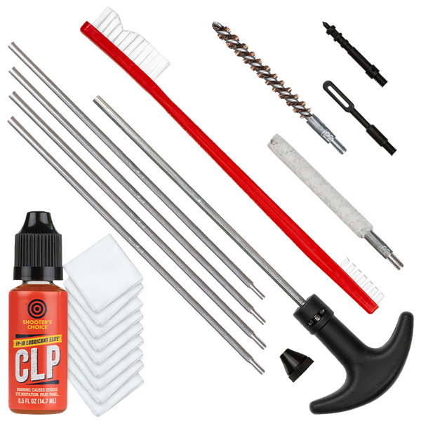 Shooters choice.22 cal rifle cleaning kit contains quality components that wont damage your firearm while cleaning.Get everything you need to clean your.22cal/.223cal rifle in one place with this gun cleaning kit.Includes aluminum rod set with swivel t-handle along with a brush, mop, jag, slotted tip, bore guide and patches.An all purpose brush and bottle of fp-10 lubricant elite clp is also included to keep your...View more