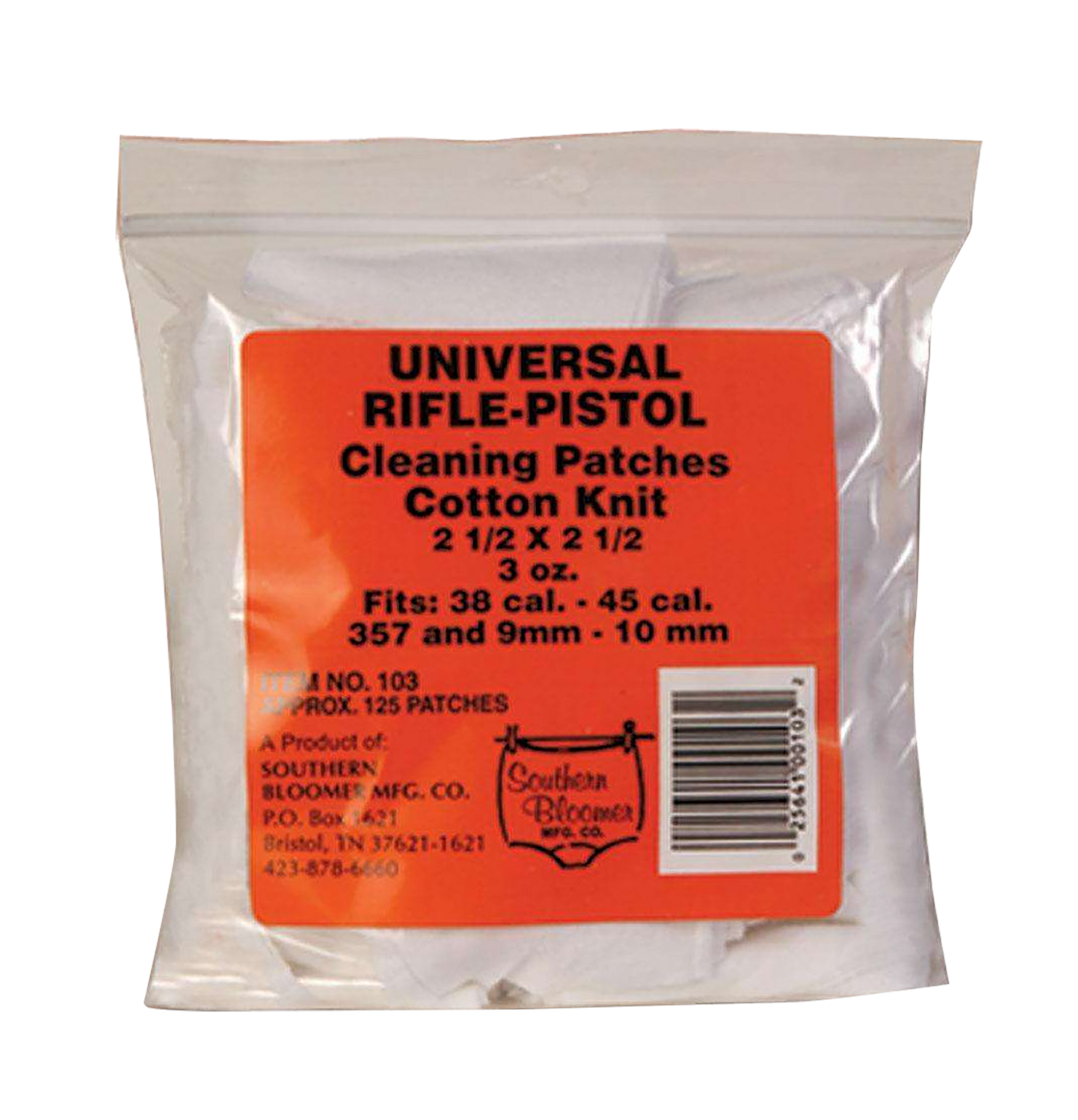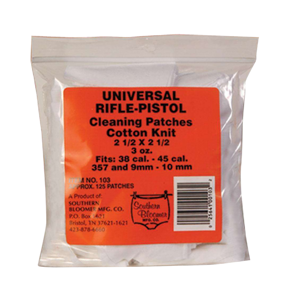 Southern bloomer cotton knit gun cleaning patches are thread less and are virtually lint free.When it comes to quality, price, and availability they simply cannot be beat.Type: Cleaning PatchesSize: UniversalQuantity: 130 Per BagMaterial: CottonSuitable For: FirearmsEco Friendly: YesView more