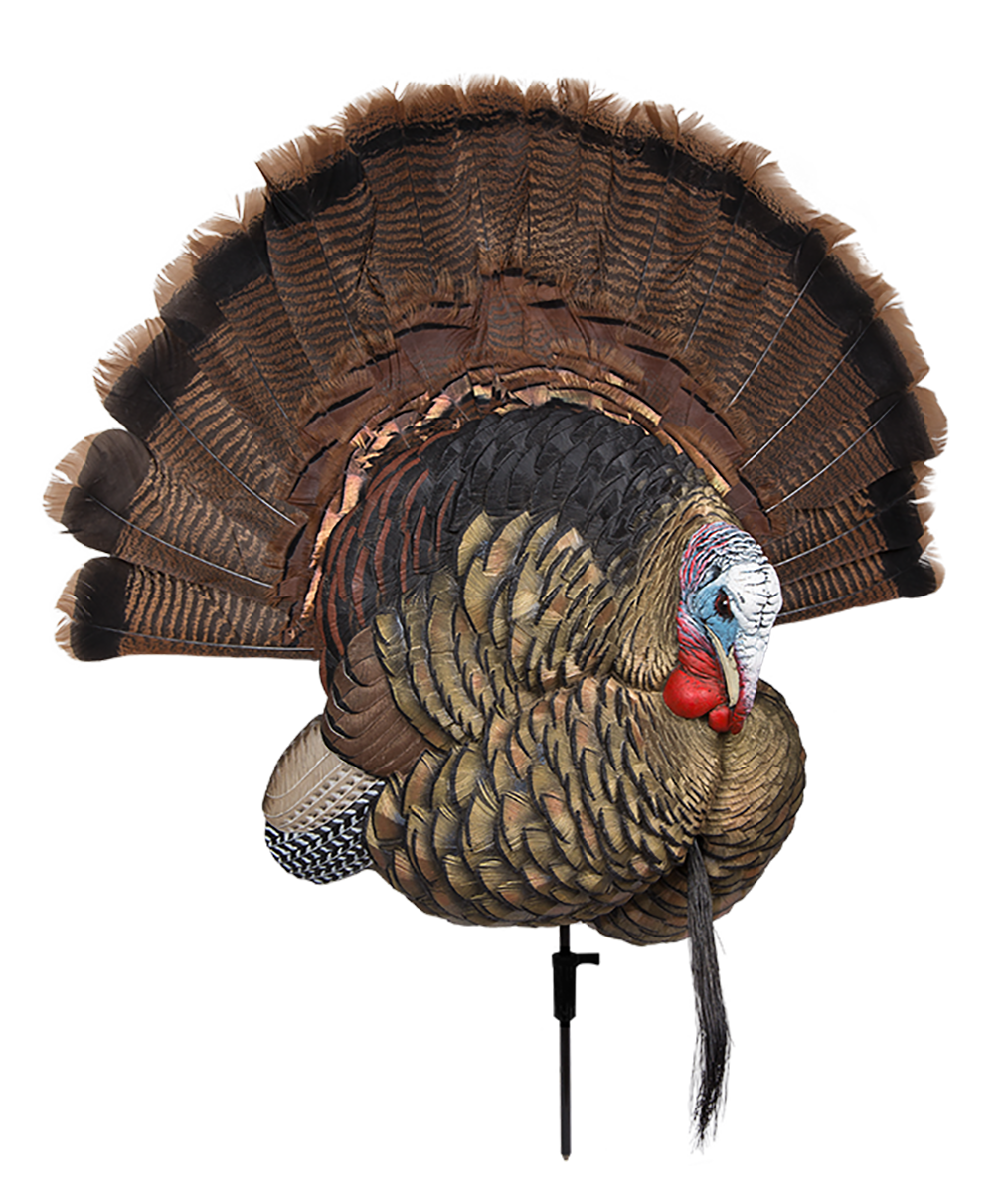 Showpiece for tail fan and beard.The one-piece design easily holds a dried tail fan and beard surrounded by detailed carvings and ultra-realistic paint.It's a great way for turkey hunters to relive memories over and over again.The trophy tom also includes a mounting stake and handle to double as a 2d strutting-style decoy in the field.Heavy-duty clip easily holds tail fan.Includes instructions on tail fan prep.Doubles as 2d decoy *does not come with fan.