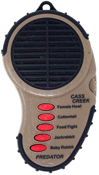 The cass creek predator electronic game call is compact and has an ergonomic grip.It features real live high quality calls.The 5 calls are the basic needs of hunting this species- a coyote howl, cottontail rabbit, jackrabbit distress, pup yips and fawn distress.The ergo electronic game call operates on 3 aaa batteries and comes with a belt clip and an external speaker input jack.Type: Electronic CallSpecies:...View more