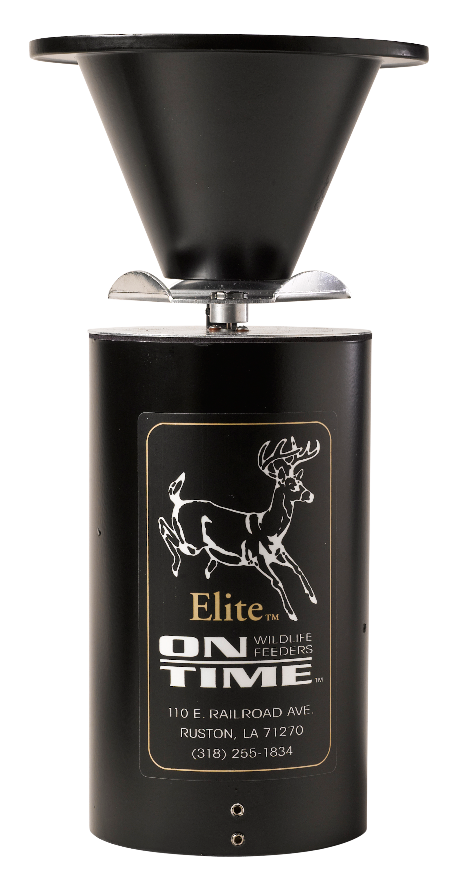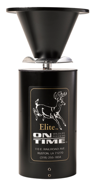 On time's elite lifetime feeder offers a lifetime of use guaranteed with the ease of digital programming.It features all aluminum housing construction and a waterproof design with the lcd in the base.The high torque energy efficient motor has three speeds and will last through the season on a single set of batteries.The user-friendly programmable lcd allows up to six customize feedings per day with durations of 1 to 30 seconds.The universal mounting allows the elite feeder to fit most hoppers.It uses 10 aa batteries (not included).