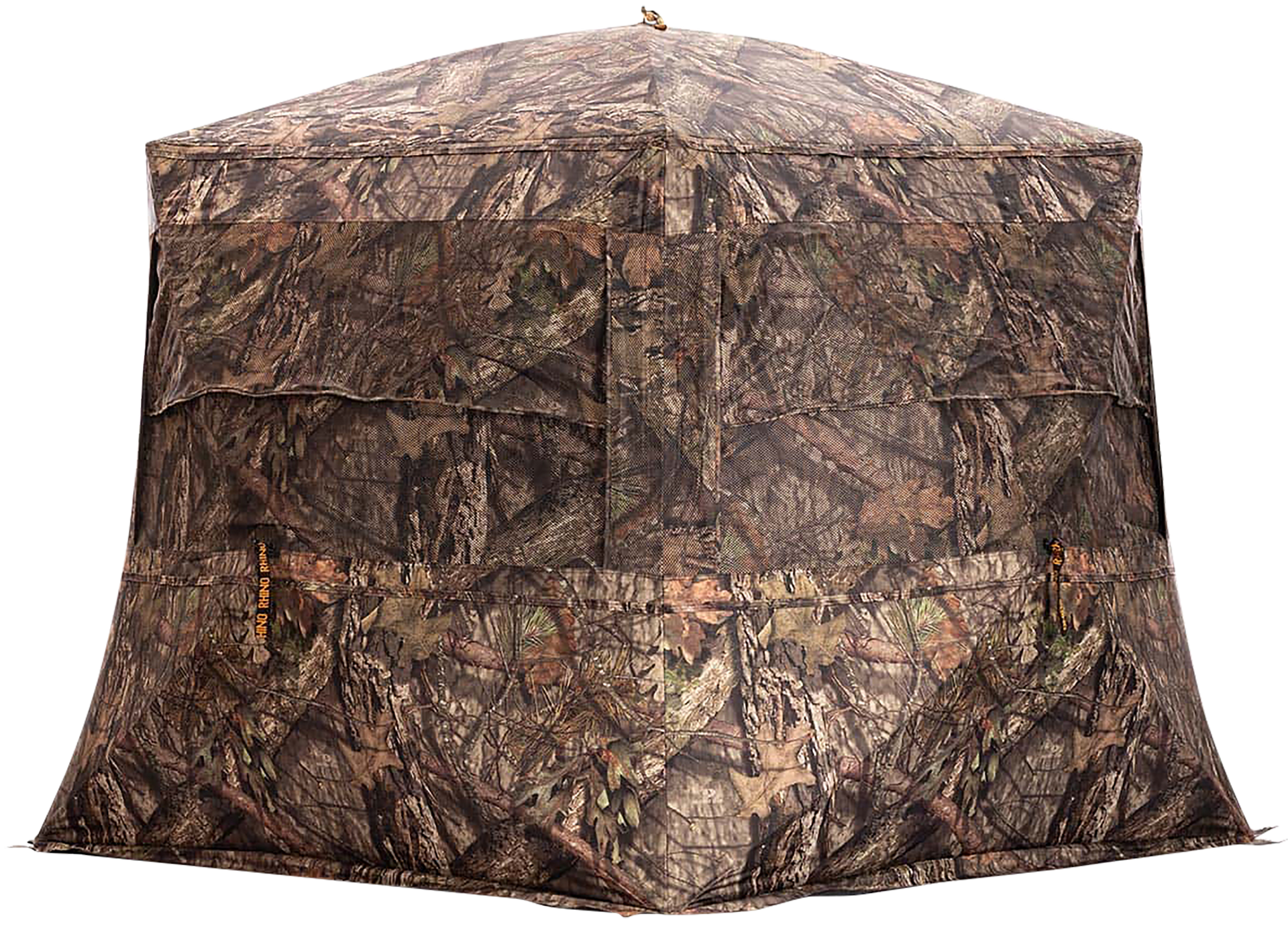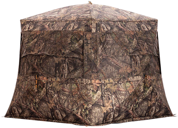 The low hub blind is meant to be very spacious, and accommodate all hunters.With the lower hub design, the overall shooting space through the windows is much larger and can start lower on the wall to help accommodate all archers, crossbows, and rifle hunters shooting from a seated position.This design offers increased foot room for gear, multiple hunters, camera tripods, etc., but still has the same ceiling footprint as a standard designed blind.See-through mesh and silent slide windows create huge visibility in a versatile blind package.Backpack-style carry case, rope tie-downs, and ground stakes included.