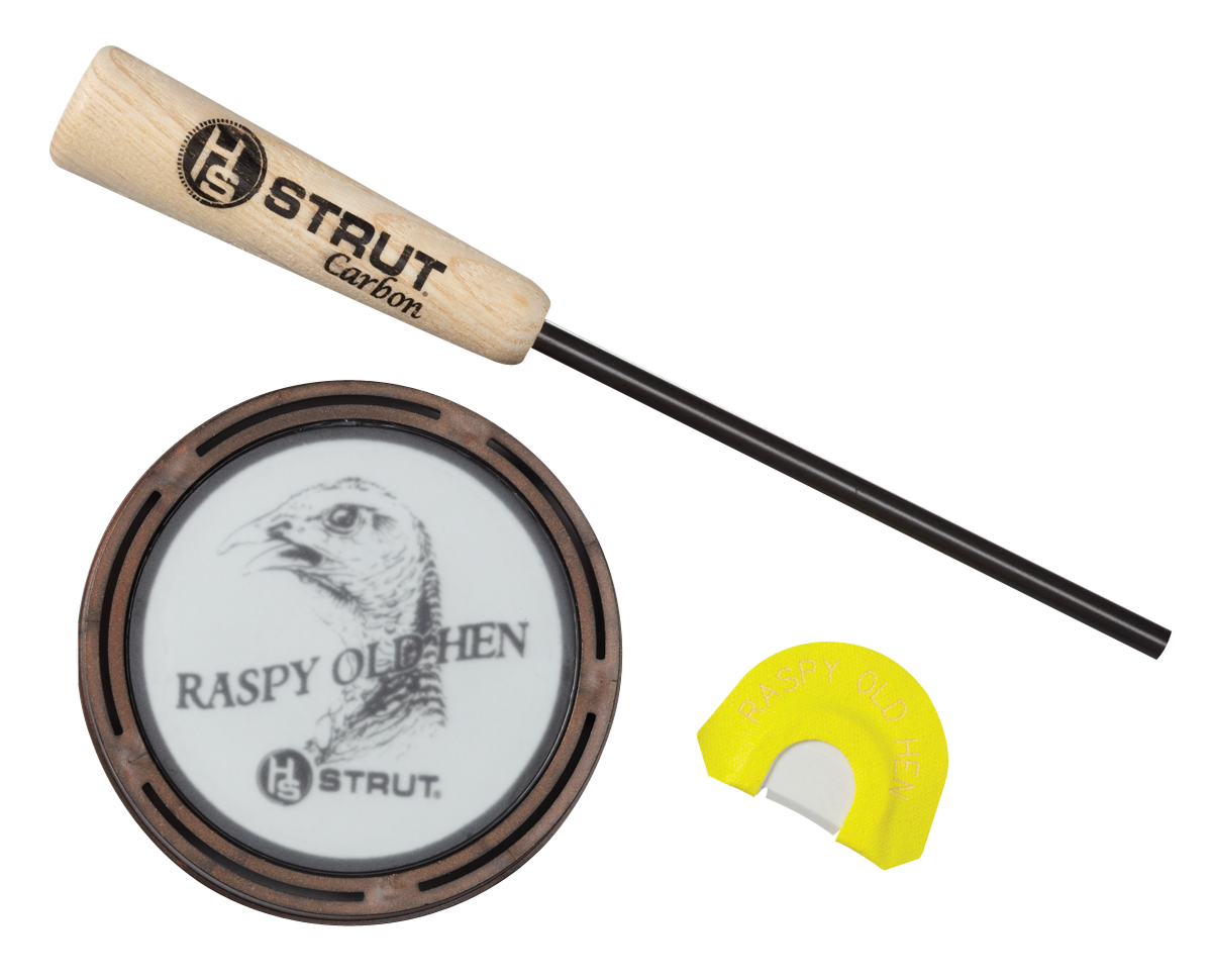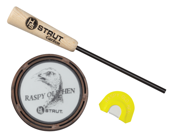 The raspy old hen allows hunters to produce a wide range of turkey sounds, from soft yelps to loud excited cutting.It has a custom molded pan for outstanding consistency.It includes a carbon striker and the raspy old hen premium flex diaphragm call, which features two reeds with a double split top reed for extra rasp and volume.