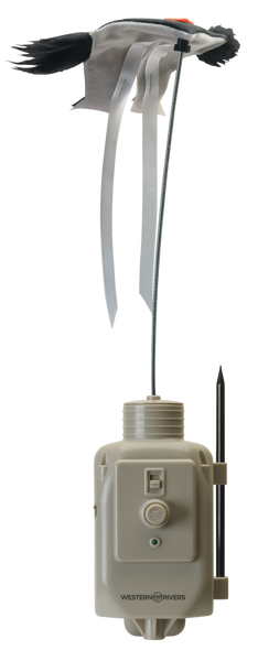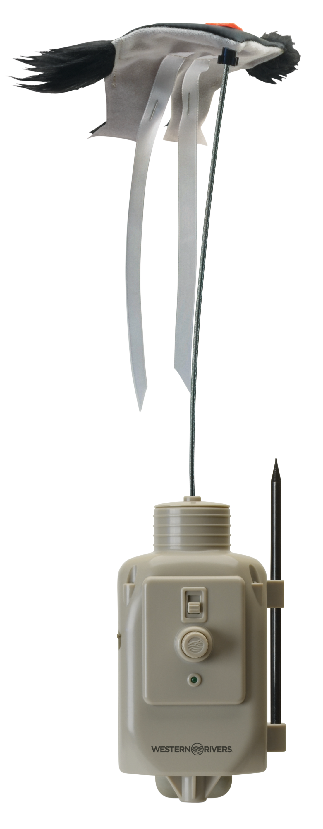 Western rivers' mantis pro decoy is a motorized assembly that form fits and connects to the attachment area on the mantis caller.It features a high speed ultra quiet motor, speed control, syncs sounds with the movement of the motor and includes two stick assemblies fur/kite with kit.The mantis pro decoy syncs controls with mantis 400 and is powered by 1x4 aa batteries (not included).