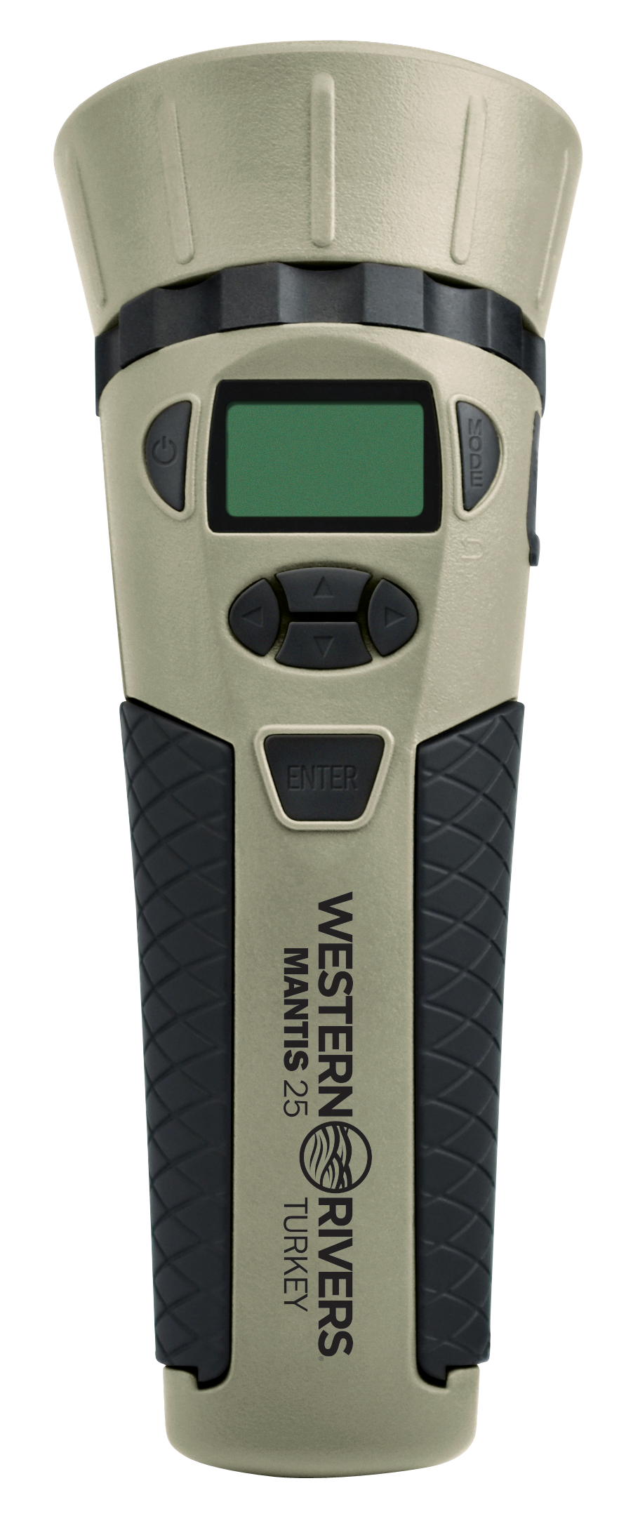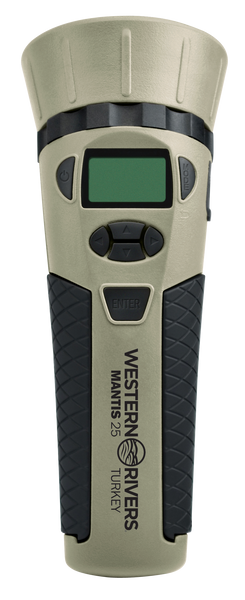 The mantis 25 paul butski signature edition turkey call is pre-loaded with 25 calls recorded by the "maestro" who is a six-time us open turkey calling champion.It has a 4-way key pad call selection/volume control, backlit led screen, random repeat timed options, and a sound activation trigger button.It has a versatile, compact design with lock-in, pivoting legs and a hand lanyard.It is powered by four aaa batteries (not included).Included is a hand lanyard.