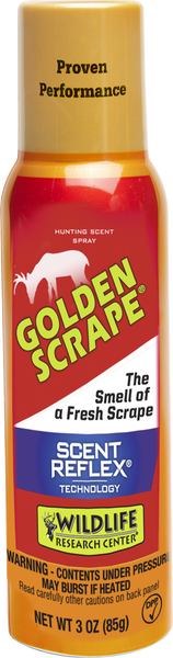 Golden scrape is an ultra-premium doe urine with estrus secretions, combined with premium buck urine.It is enhanced with subtle tones of fresh scraped earth and territorial musk and is extremely effective at both mock scrapes and natural scrape locations.Species: DeerScent Type: AttractantDispenser Type: AerosolScented: Doe In EstrusView more
