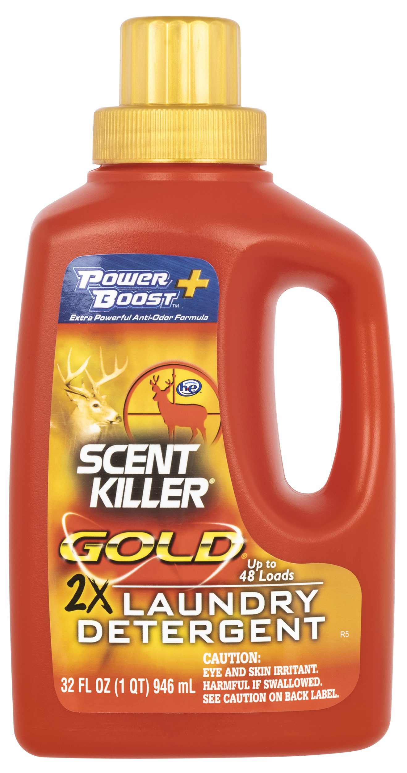 Scent killer gold laundry detergent has ultra concentrated odor fighting power and ultra-premium dirt and stain fighting power.One jug will do twice as many loads per ounce compared to regular scent killer liquid clothing wash.Special he f formula with no uv brighteners.Species: 32 ozScent Type: Odor EliminatorDispenser Type: BottleScented: OdorlessView more