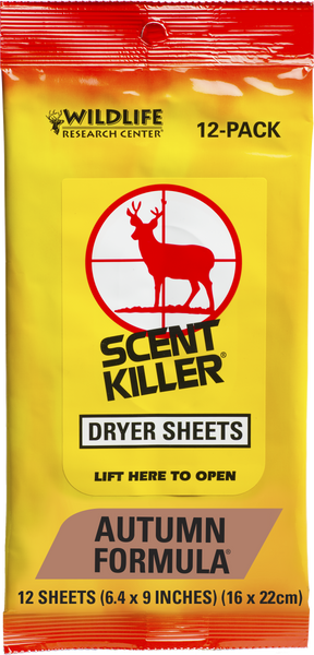 Wildlife's scent killer autumn formula dryer sheets add the subtle scent of the forest floor.Helps prevent static build up from attracting lint and hair that may contain odors.Softens hunting clothes to help keep them quiet.Type: Odor EliminatorSpecies: Human Odor EliminatingQuantity: 12Effective Time: Several HoursScent Type: Odor EliminatorDispenser Type: Dryer SheetScented: AutumnBiodegradable: YesView more