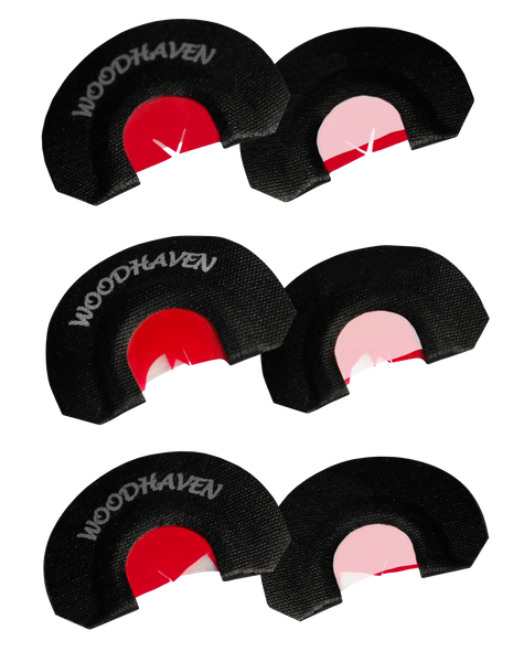 The red ninja 3 pack is a combination of woodhaven diaphragm turkey calls built with our ninja red latex.This pack is built to give the turkey hunter three totally unique turkey sounds.The red ninja pack includes the red power v, red half venom and the red reverse hammer.These three diaphragm calls offer a very light feel with tons of backbone.Whether its those soft early morning tree calls to the hard cutting and yelping of wild turkey hens, these calls do it all.