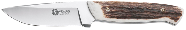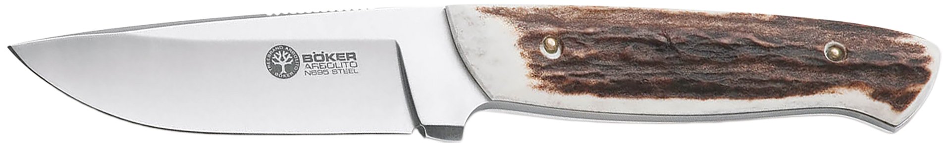 The arbolito stag fixed blade is a blend of the best characteristics of some of the older models, but with added features.The 3 1/2" blade, made of n695 stainless steel, features a notched thumb ramp for stabililty and control under adverse conditions.Premium stag scales and tapered tang make for a comfortable grip.Comes complete with a high grade leather sheath.