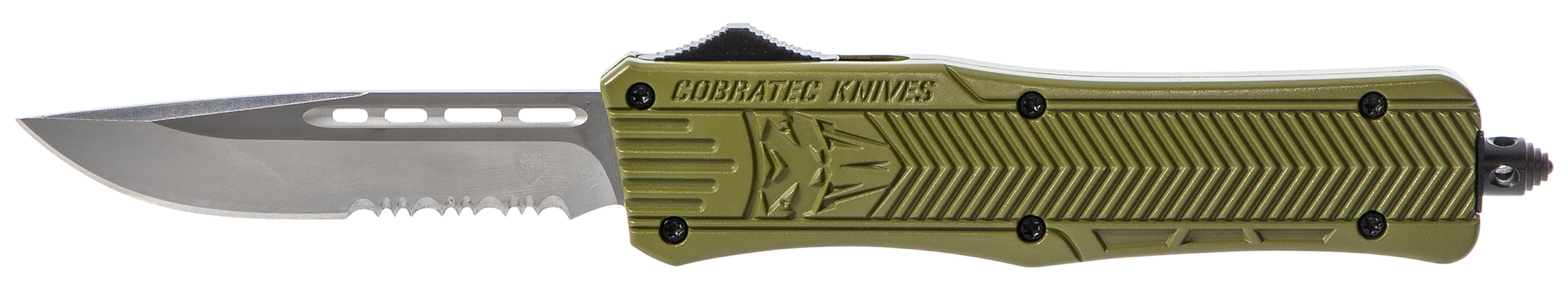 The cobratec ctk-1 is designed for use with any task.Featuring an aluminum alloy handle and an otf (out the front) opening design it allows for rapid deployment with minimal effort.Total length with glass breaker is 8".