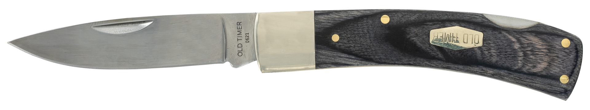 The old timer heritage series bruin 50the anniversary with a wood laminate handdle and nickel silver bolsters.