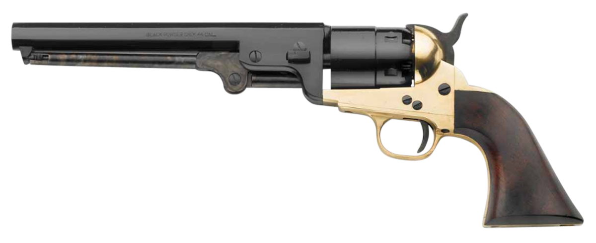 The 1851 navy model was considered as one of the most brilliant single action revolvers thanks to its fast draw and light recoil.The re nord navy features an octagonal barrel, brass frame, brass triggerguard and backstrap.