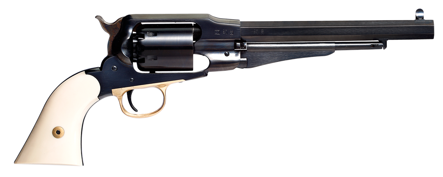 The 1858 remington became so famous that it was the prevailing choice of military officers following the civil war.Its full-frame design still makes it a top choice for black powder shooters today as the cylinder can be removed without taking the firearm completely apart, unlike the colt models.The sodbuster features a forged steel frame, brass trigger guard, octagonal barrel, dovetail front blade sight, ivory two-piece...View more